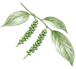 Planta trepadora perenne (Piperaceae) cultivada por sus frutos (drupas) que, secos o molidos, se usan como especia. El picor se asocia principalmente a la piperina y el aroma a compuestos volátiles.